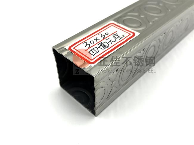 本款產品是新型的藝術不銹鋼,在不銹鋼管的表面壓出漂亮復雜的花紋,可以定制各種個性花紋。廣泛應用于各種建筑裝飾。
